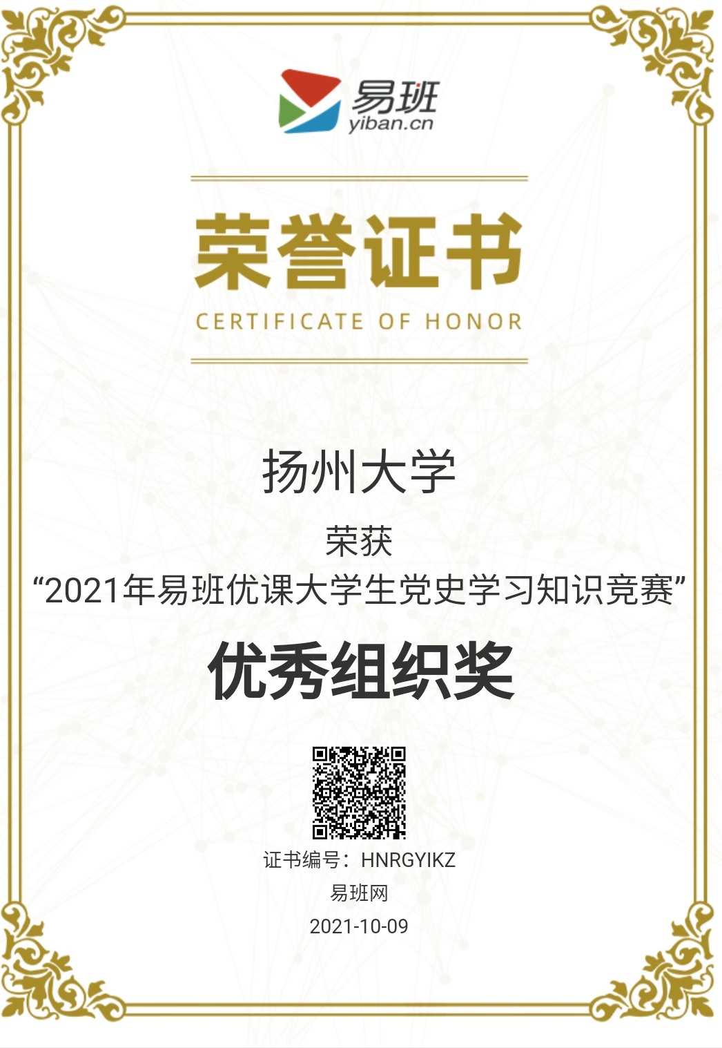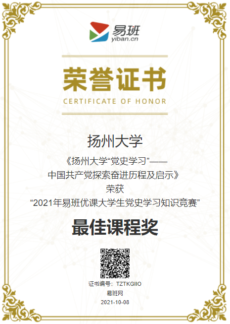 日前,我校在“2021年全国易班优课大学生党史学习知识竞赛”活动中荣获最佳课程奖和最佳组织奖。