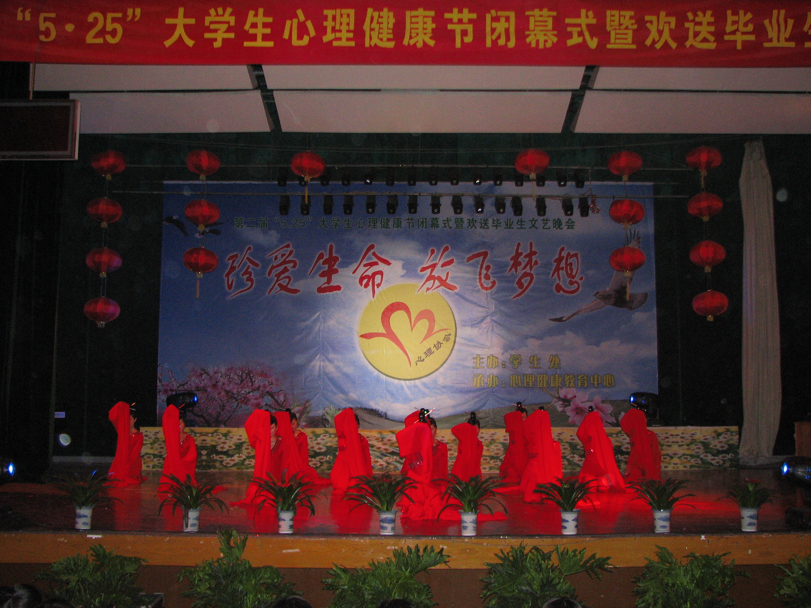 5月26日晚,我校大学生心理协会受邀出席扬州科技学院(筹)第二届“5·25”大学生心理健康节闭幕式晚会。为做好此次交流与观摩活动,校大学生心理协会选派了女子舞蹈“京韵国风”节目参加晚会,该节目所表达的昂扬向上的生命追求、悠久迷人的民族文化,获得了晚会观众的极大共鸣,现场掌声经久不息。
