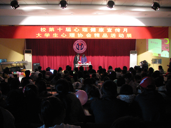 11月14日下午,由校心理健康教育中心主办、校大学生心理协会承办的第十届心理健康宣传月大学生心理协会精品活动展在文汇路校区科技报告厅举行。校学生处副处长赵春丹老师、校心理健康教育中心主任周春开老师等出席活动。