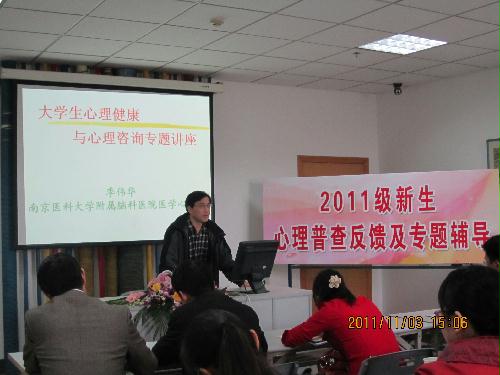 本次反馈邀请了南京脑科医院心理危机干预专家季伟华博士就《大学生心理健康与心理咨询》进行了专题辅导。心理健康教育中心老师介绍了2011级新生心理普查的总体情况与数据分析说明,并就如何科学运用心理普查数据和跟踪反馈提出了具体要求。