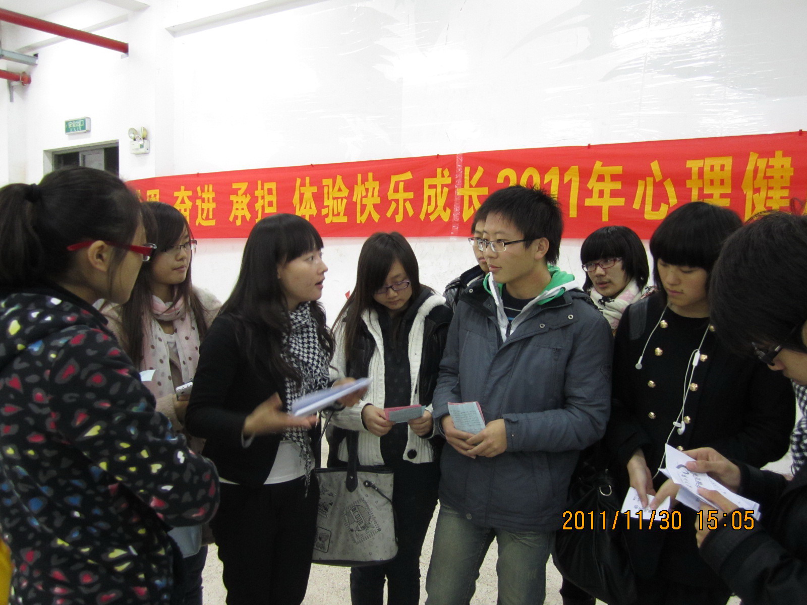 11月30日下午,我校在扬子津校区举行心理健康教育进公寓活动。本次活动作为我校第十二届心理健康宣传月的闭幕式,围绕“感恩奋进承担体验快乐成长”的主题,通过心理健康知识展板宣传、心理知识竞答、心理素质拓展、心理才艺展示、心理邮箱和许愿树等丰富多彩的活动环节,吸引了众多学生的积极参与。本次活动由校学生处、心理健康教育中心主办,校大学生心理协会承办。
