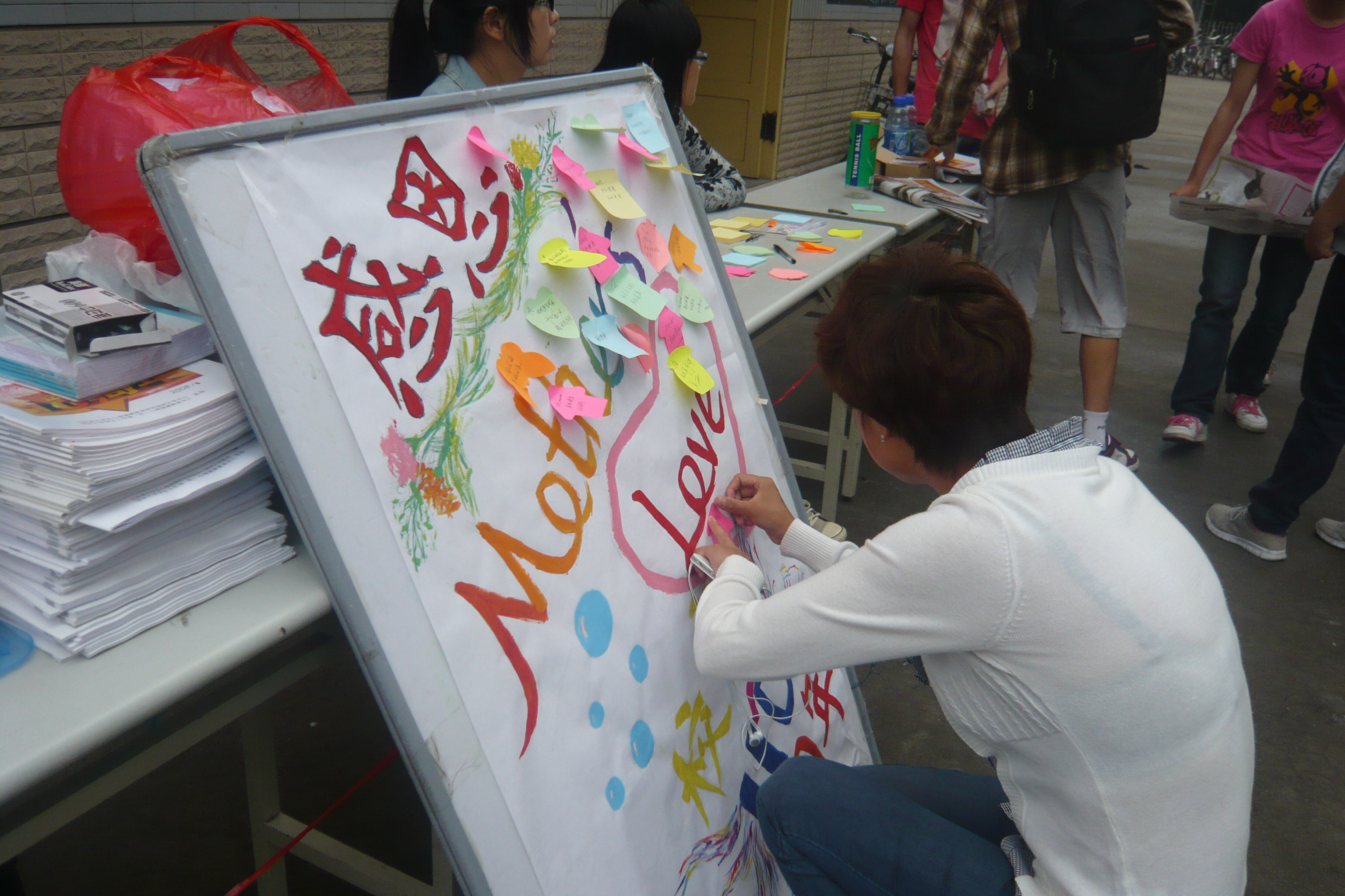 此次活动共分为心灵卡片、心理邮箱、心理知识竞答、心灵丝带几个部分。心灵卡片上关于母亲节相关知识的介绍,引起了广大同学浓厚的兴趣;心理邮箱为大家提供了寄语母亲的平台,同学们畅所欲言,抒发他们对母亲的感恩之情;心理知识竞答环节,大家竞相回答关于校庆、母亲节的相关问题,现场气氛十分活跃,同学们还在心灵丝带上写下了他们对母校、母亲的祝福,一条条丝带随风飞扬,别有一番风景。