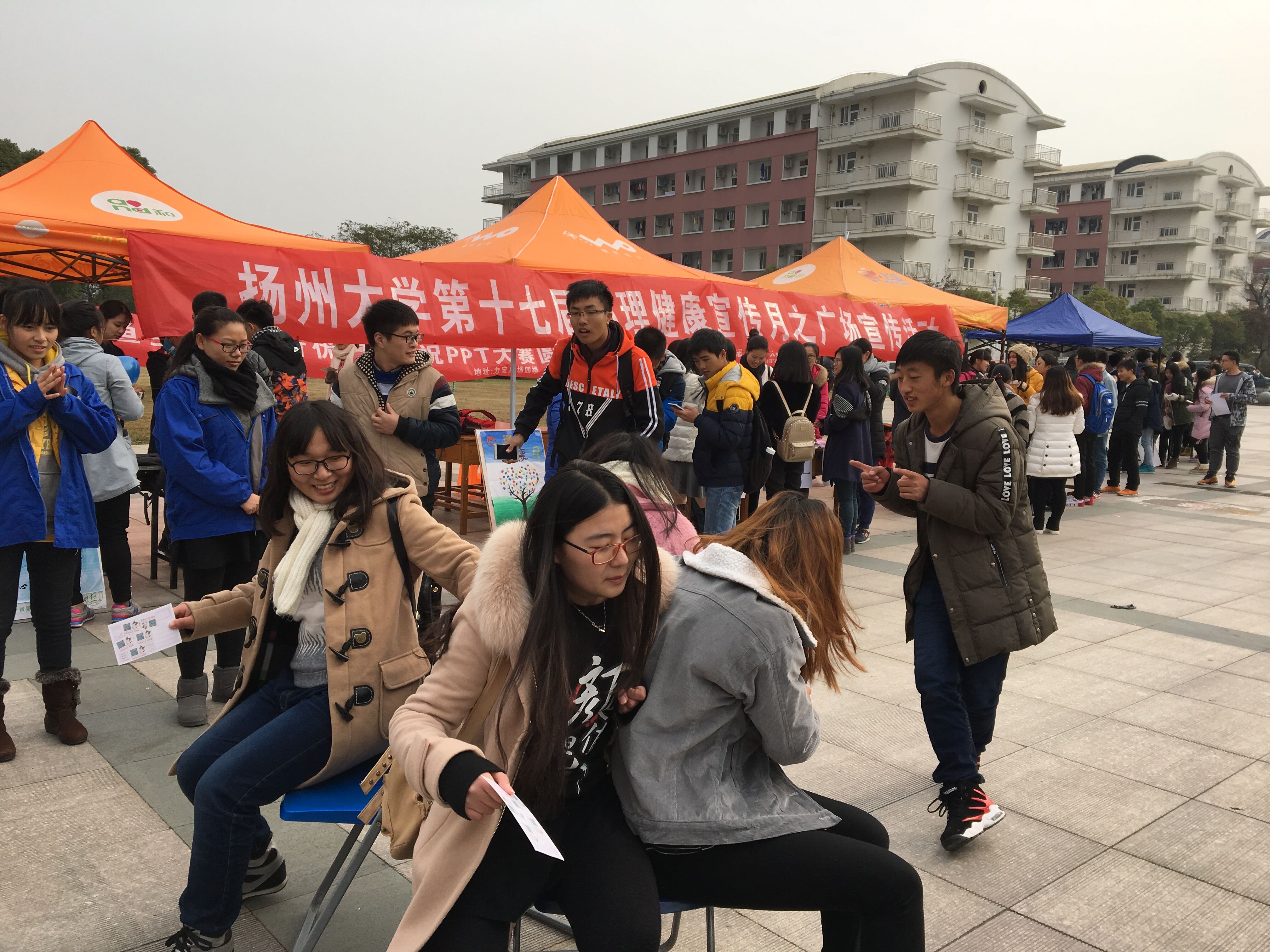 扬州大学第十七届心理健康宣传月之广场宣传活动圆满落幕 11月25日,由我校心理健康教育中心主办,校、院大学生心理协会承办的第十七届心理健康宣传月之广场宣传活动在扬子津校区西区广场顺利举行。