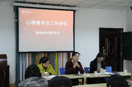 12月16日,校心理健康教育中心在大学生活动中心N303召开2016年秋学期第二次心理辅导员工作会议,校研究生院赵晓兰部长、校心理健康教育中心主任兼学生处副处长侯燕、校心理健康教育中心专职老师以及来自28个学院的心理辅导员参加了会议。