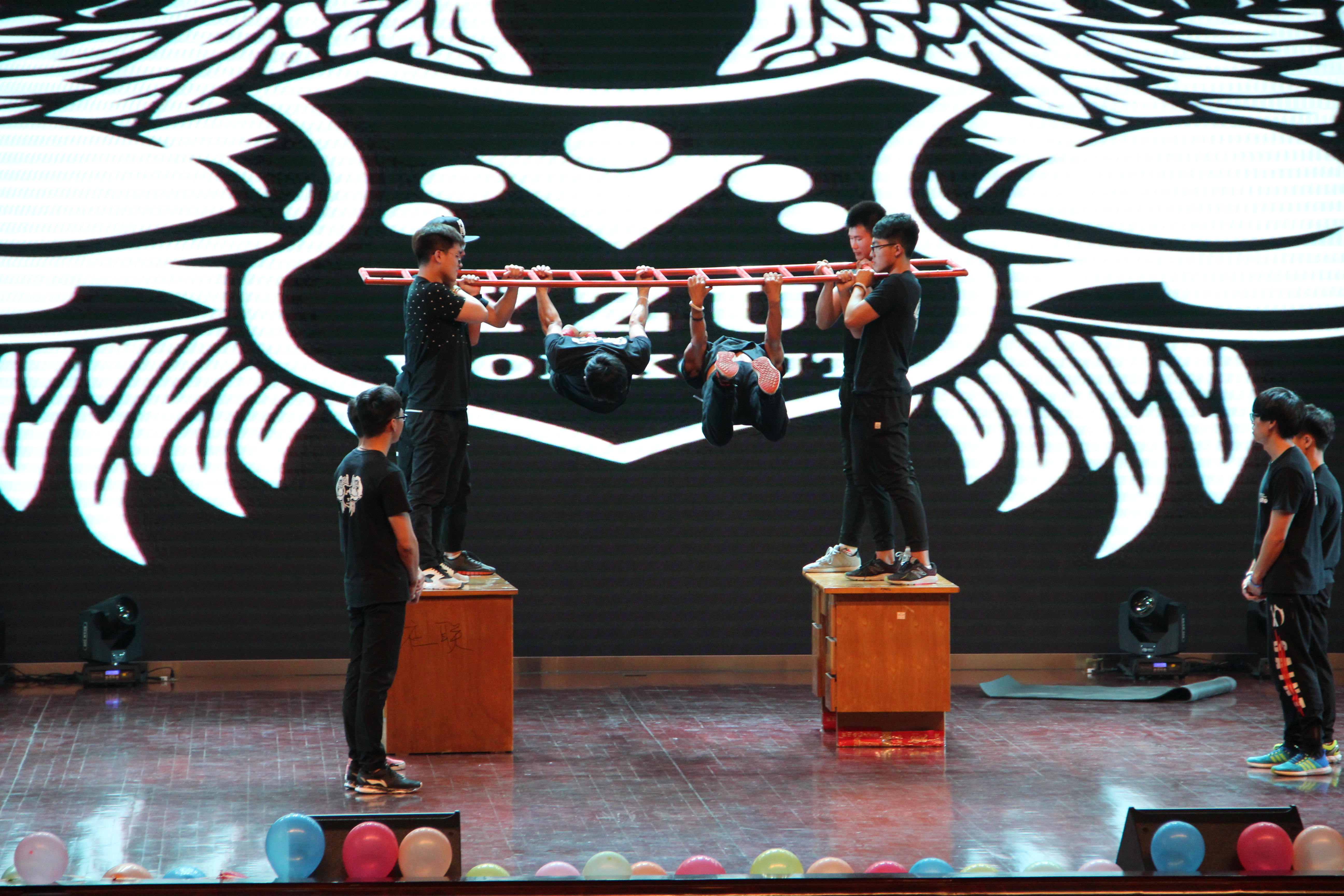 晚会以Zero健身社带来的极限健身表演热血开篇,健硕的身材魁梧有力,突破极限的挑战令人瞠目结舌。集观赏性和实用性于一体的极限健身表演,让观众感受到运动的快乐与魅力以及青春的绚烂和蓬勃的朝气,现场气氛被爆发的荷尔蒙点燃。