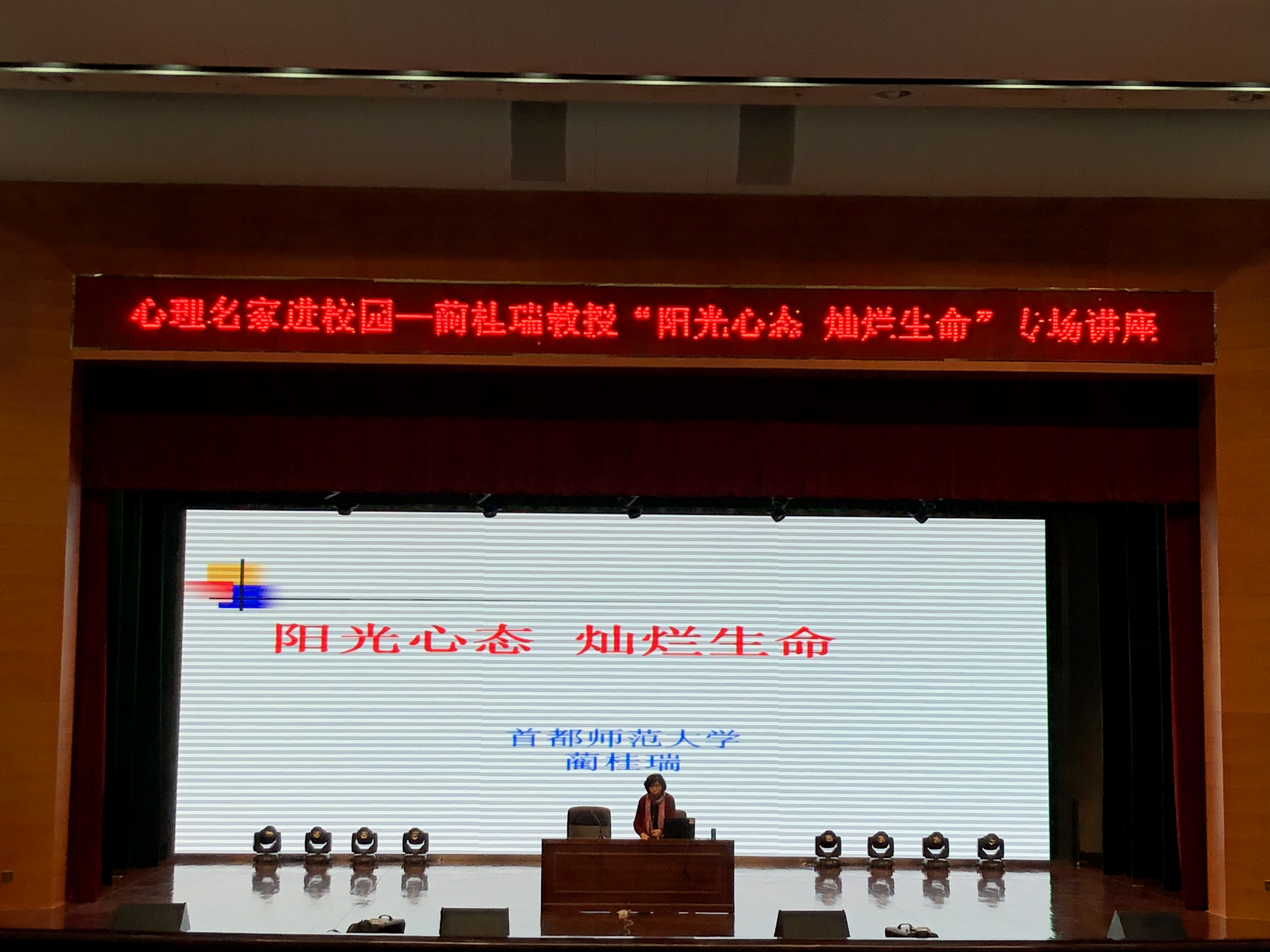 11月28日下午,首都师范大学蔺桂瑞教授应邀在学校扬子津校区文体馆作题为《阳光心态 灿烂生命》的专题报告。