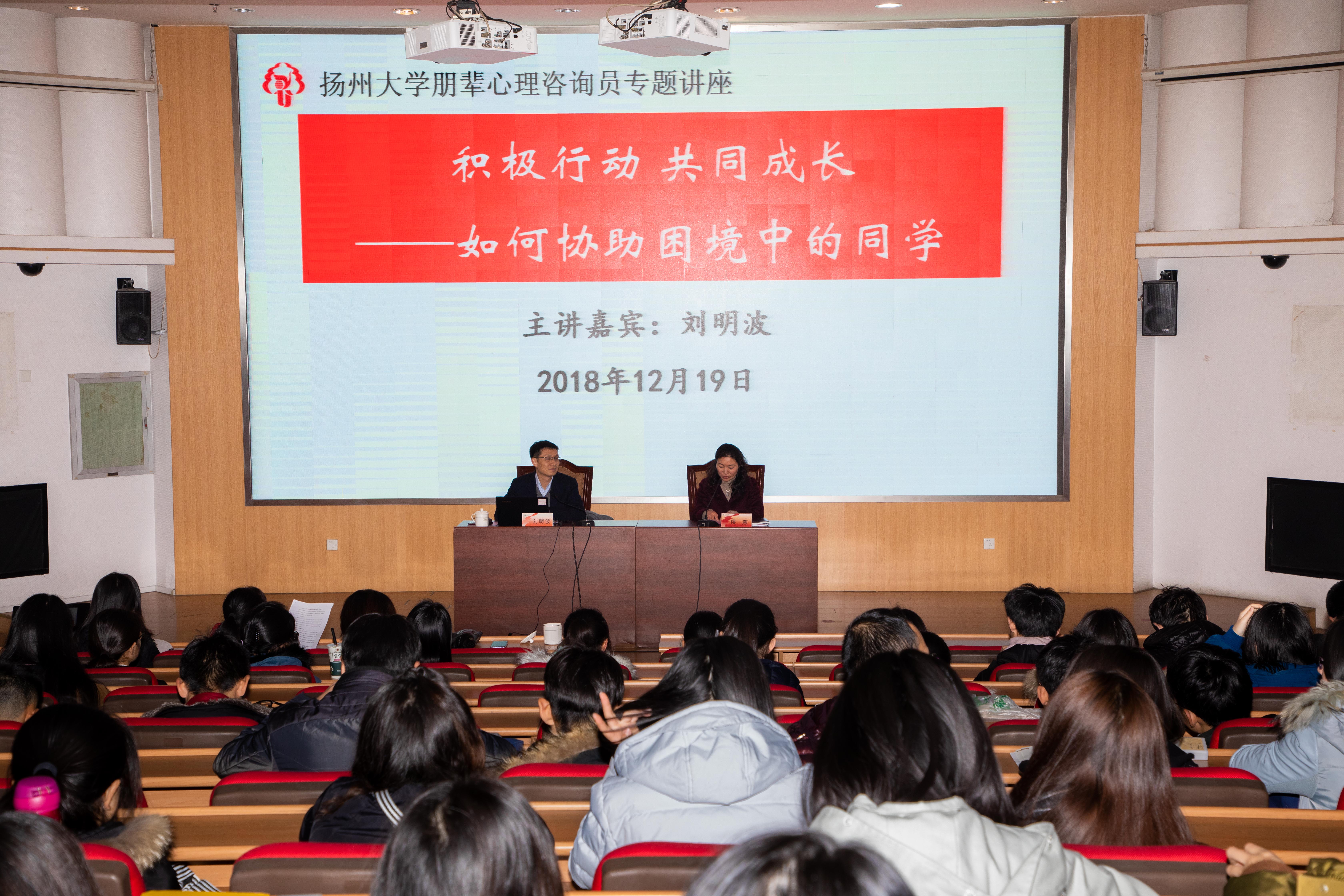 另悉,12月19日下午,刘明波为400余名朋辈心理咨询员作题为“积极行动 共同成长——如何协助困境中的同学”专题讲座。