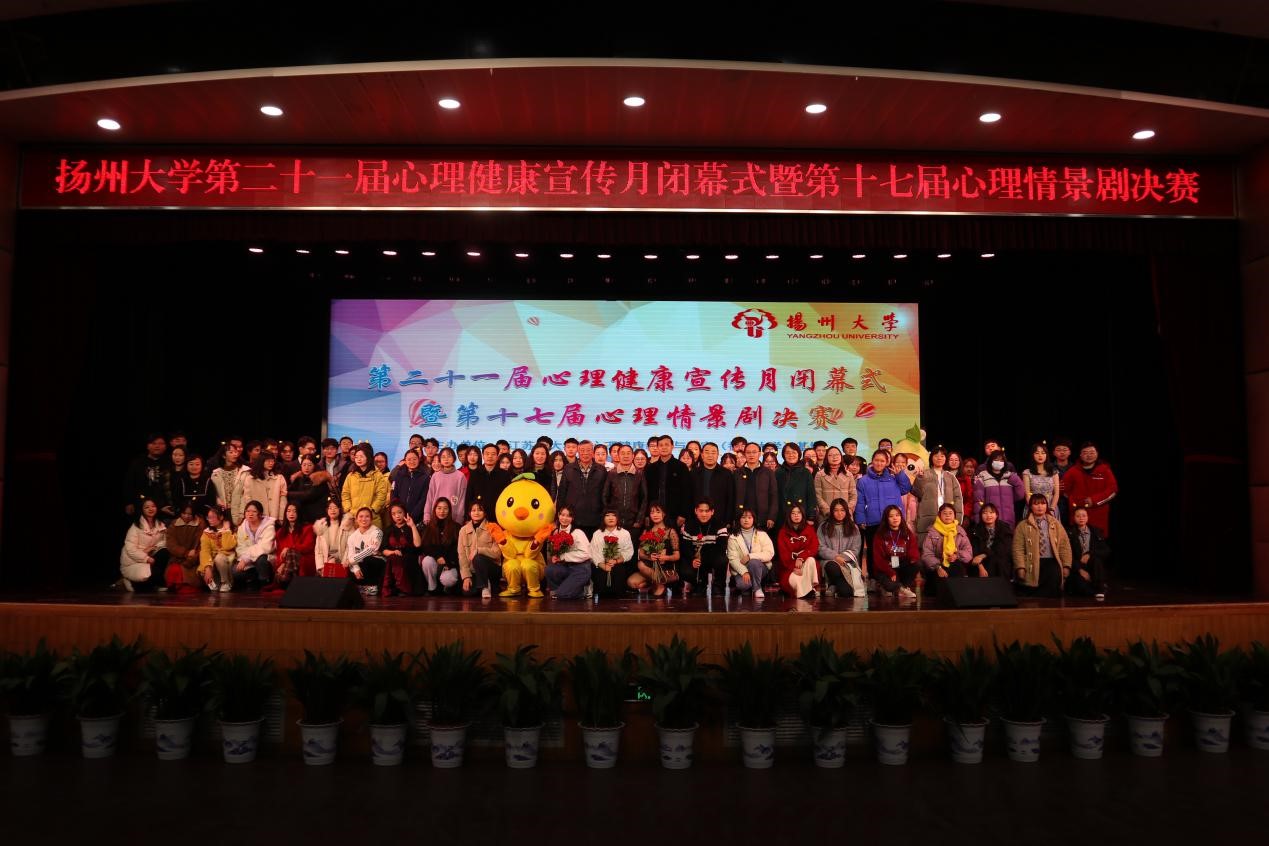 学校举办第二十一届心理健康宣传月闭幕式暨第十七届心理情景剧大赛12月5日晚,由江苏省大学生心理健康教育与研究(扬州大学)基地、校心理健康教育中心、关心下一代工作委员会主办,校大学生心理协会承办的第二十一届心理健康宣传月闭幕式暨第十七届心理情景剧大赛在荷花池校区大学生活动中心三楼小剧场举行。校一级辅导员李士庭老师,校心理健康教育中心、关心下一代委员会负责人,相关学院党委副书记以及各学院师生代表共500余人参加了本次活动。