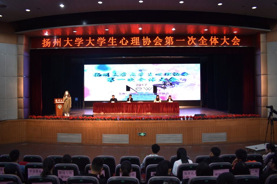 10月14日下午,由扬州大学大学生心理协会主办的2017-2018学年第一次全体大会在荷花池校区大学生活动中心小剧场拉开了帷幕。此次大会邀请了心理协会指导老师张硕,校、院心理协会部长、干事以及大一各班心理委员们,大家齐聚一堂展开了对心理协会未来发展规划的讨论,通过各级代表发言、心协特色活动表演等环节展示了心理协会的青春活力,增强了团队凝聚力。