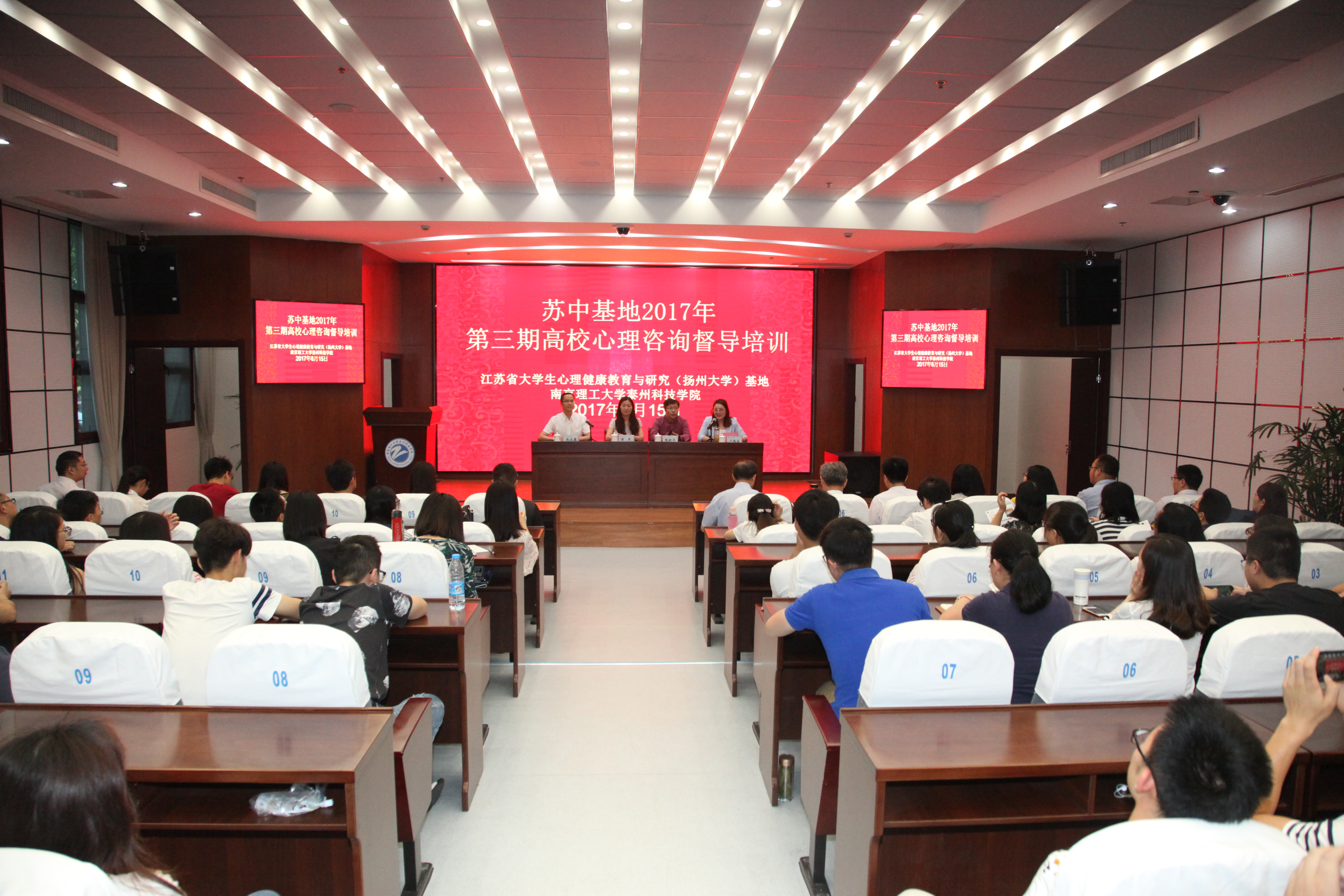 6月15、16日,苏中基地2017年第三期高校心理咨询督导培训在南京理工大学泰州科技学院举行,国家注册心理督导师、苏州大学临床心理学硕士生导师、博士、副教授陶新华应邀作为督导师,来自南通、扬州、镇江、泰州地区的10余所高校的近30名专兼职心理健康教师参加了此次培训。