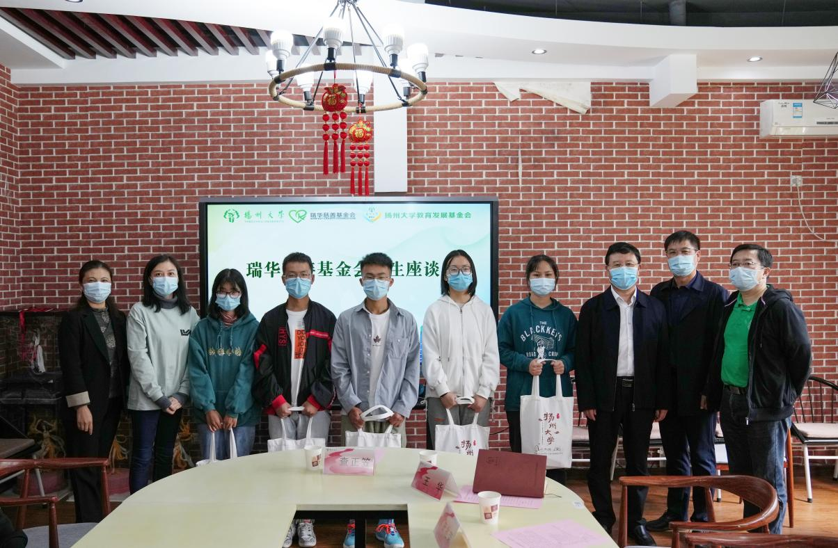 随后,召开了瑞华慈善基金会新生代表座谈会。座谈会上,学生们介绍初到扬州大学的感受、大学的梦想和当下的困惑,感谢瑞华慈善基金会的无私帮助。学生资助中心王华主任表示,请基金会放心,学校一定会将基金会的关心送到最需要的人手上,发挥助学金的最大效用;请家长放心、请学生放心,国家、社会、学校已形成完善的资助体系,学校会关心每一位学生,没有什么困难可以阻挡学生成长的道路,同学们只要安心学习,专心实践。史兆荣副理事长向同学们表达了殷切的问候,勉励学生要展现“由我不由天”的气概,无法选择出身,但一定可以选择未来;要学好专业知识,掌握“真本领”;要有一颗感恩的心,让爱心的种子生根发芽。学校学生资助中心也为同学们准备了慰问大礼包。