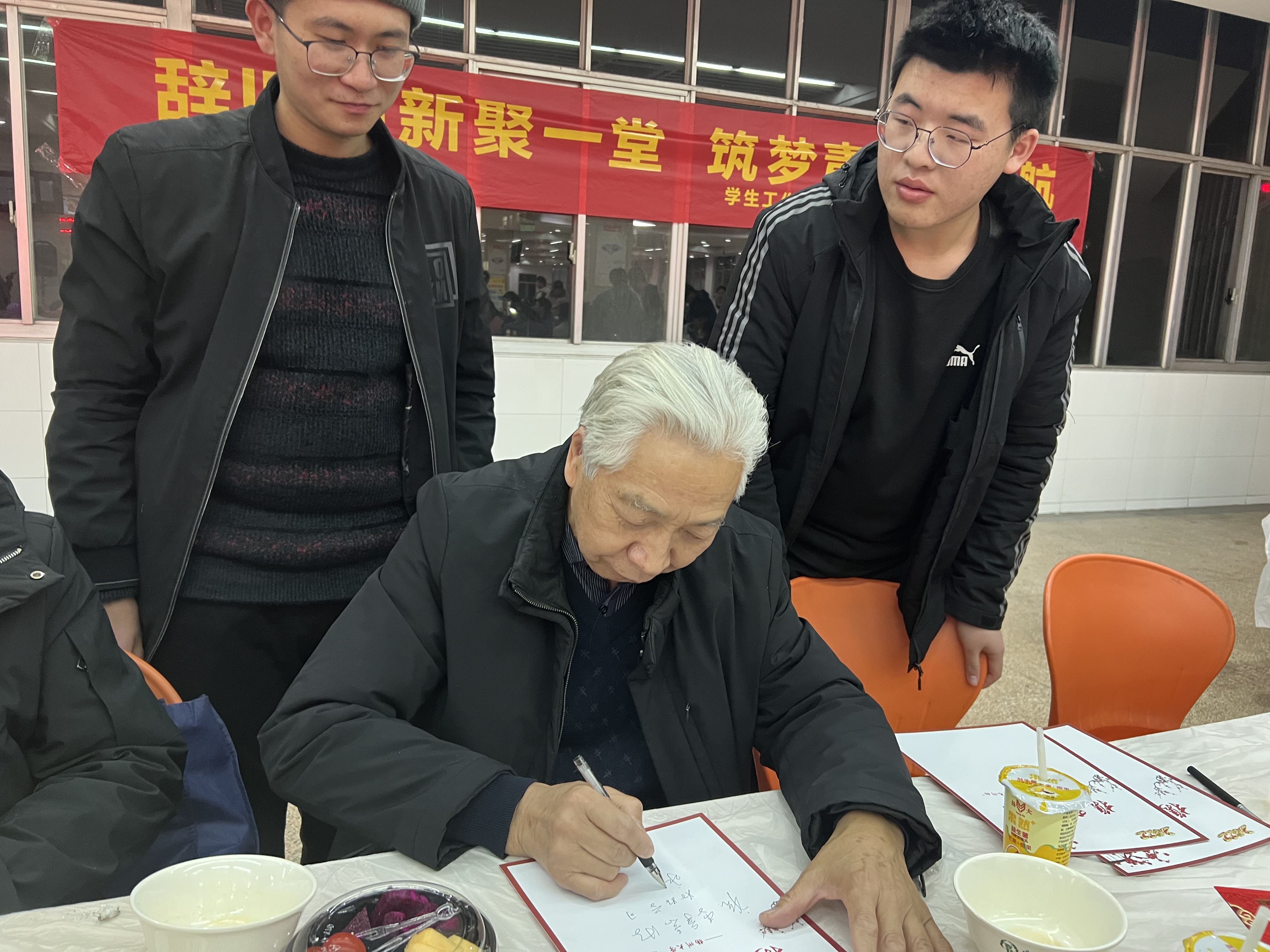 此外,同学们还收到了来自优秀学长学姐的新年贺卡,贺卡包含了学长学姐们对新生的勉励。关工委老教师更是为新生现场书写寄语,为新生们送上祝福。“祝李同学新年快乐,好好学习,成人成才,坚定理想,报效祖国”。贺卡上留下的是新年的祝福,更承载着前辈们的殷切期盼与寄托,希望新生们都能不负期待,不负美好的大学时光。