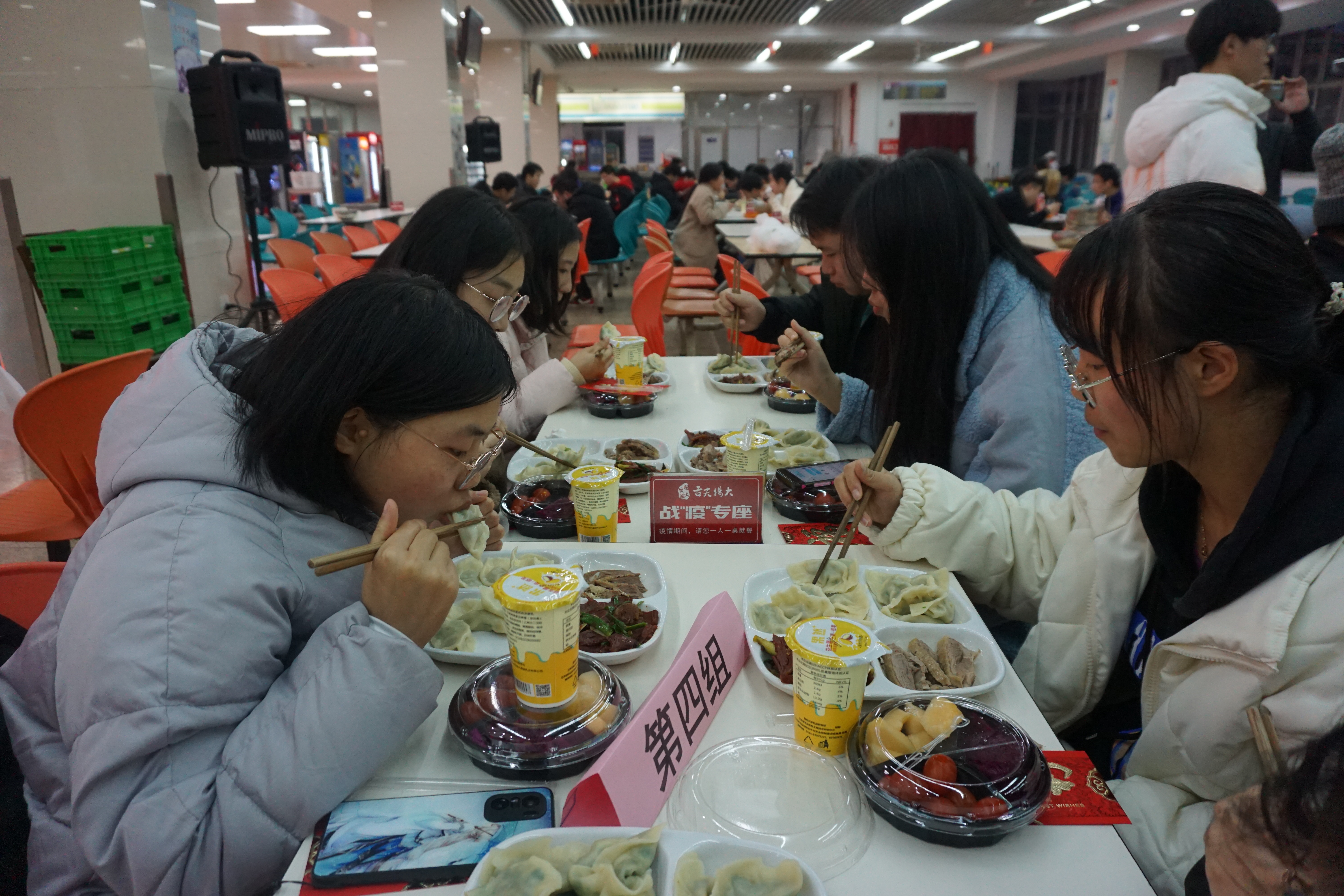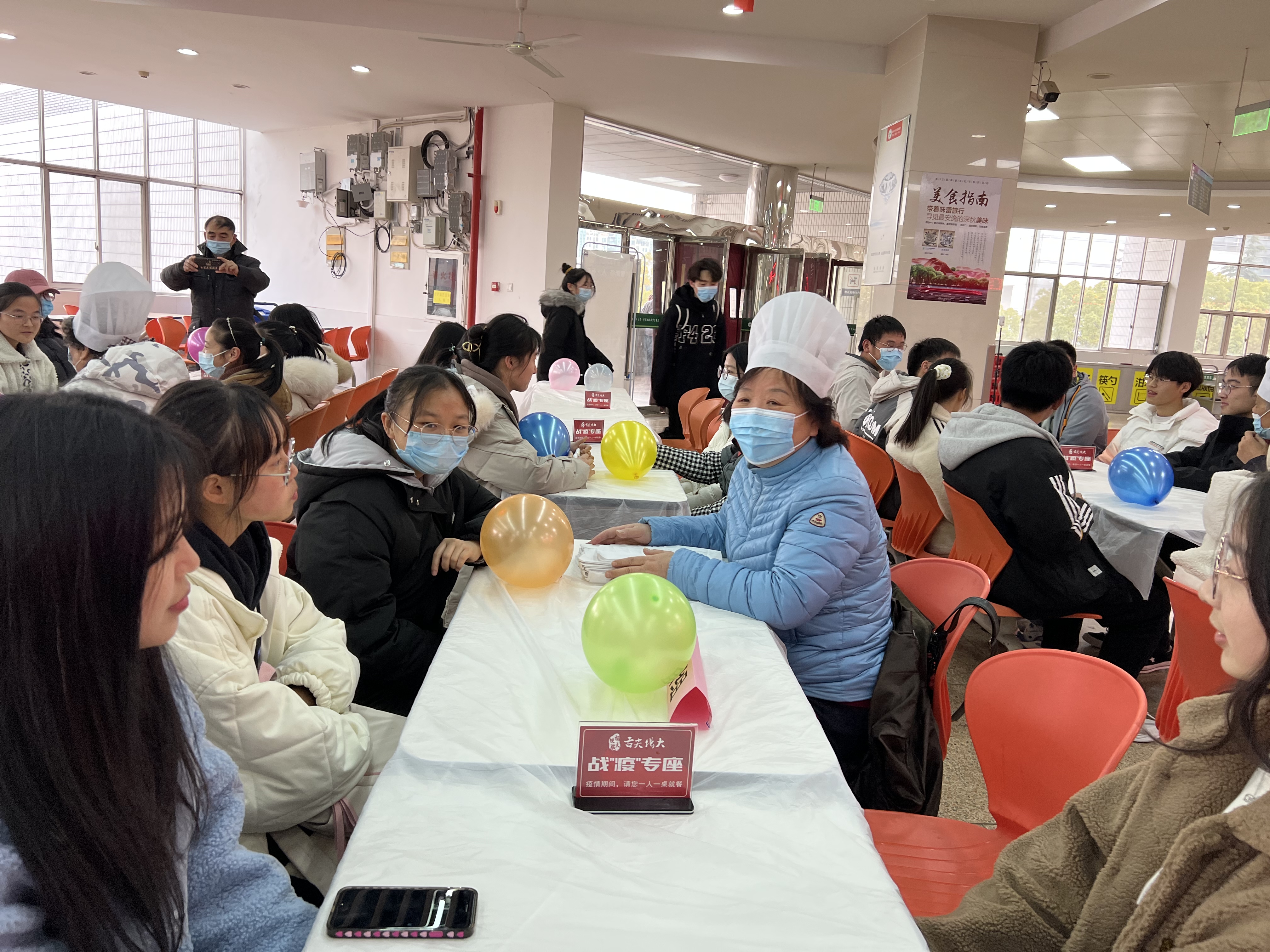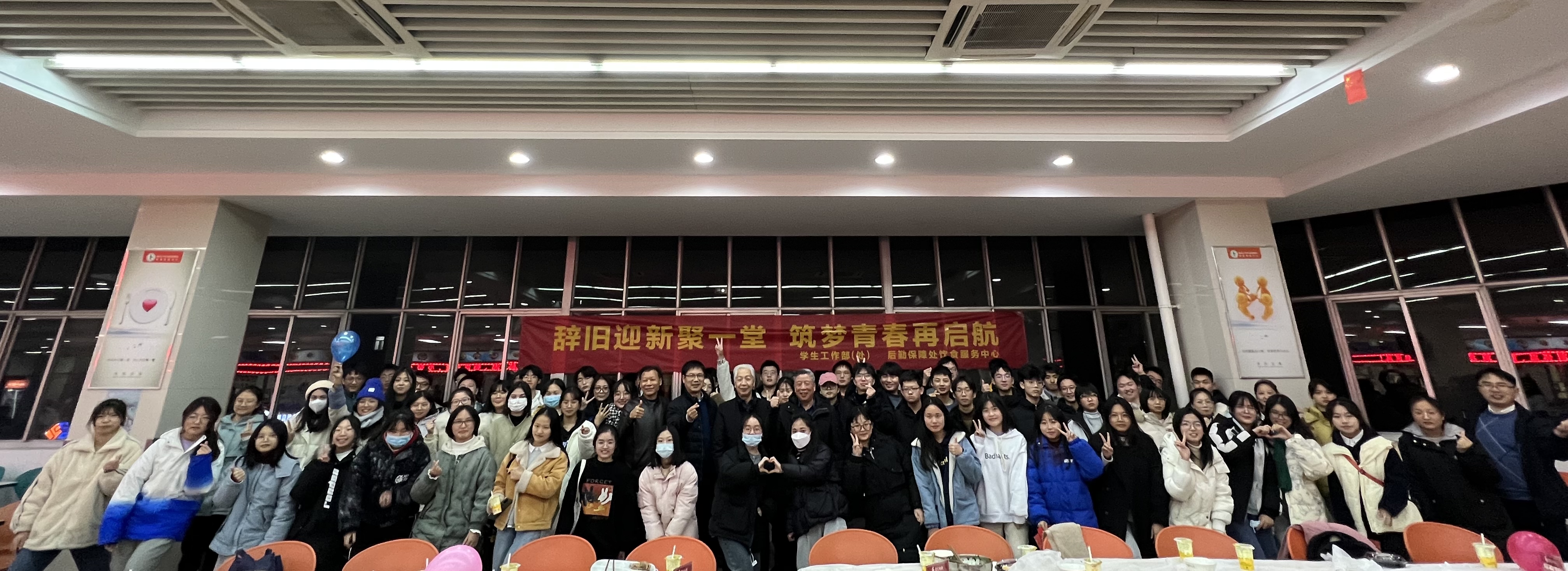 岁杪已至,新春可期。12月31日下午四点,来自扬州大学伯藜学社与瑞扬学社的80余名大一新生,在扬州大学关工委老教师的陪伴下,于荷花池校区食堂开展了“辞旧迎新聚一堂 筑梦青春再启航”迎新年包饺子活动,共同度过了一个充满喜悦与温情的跨年。