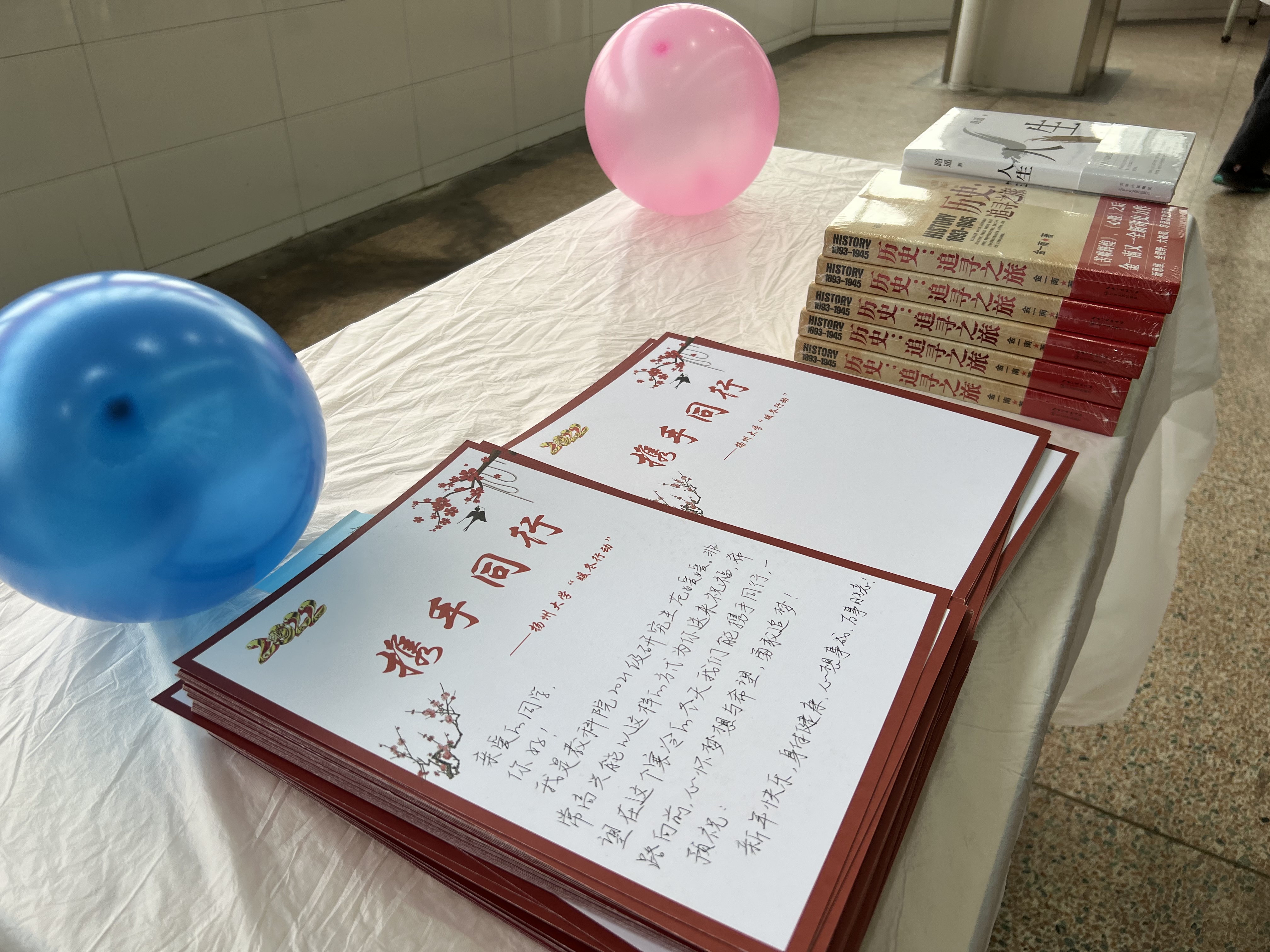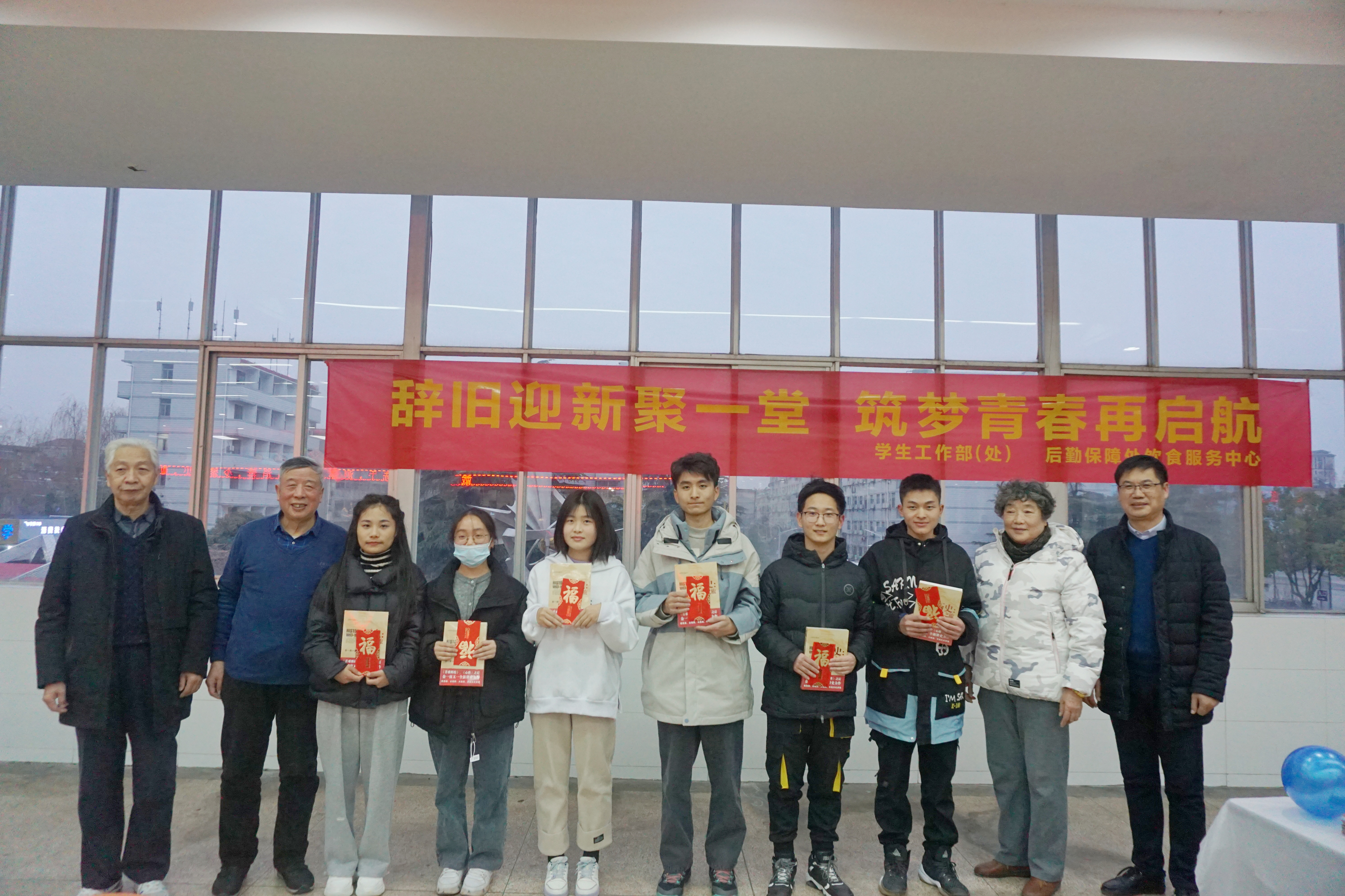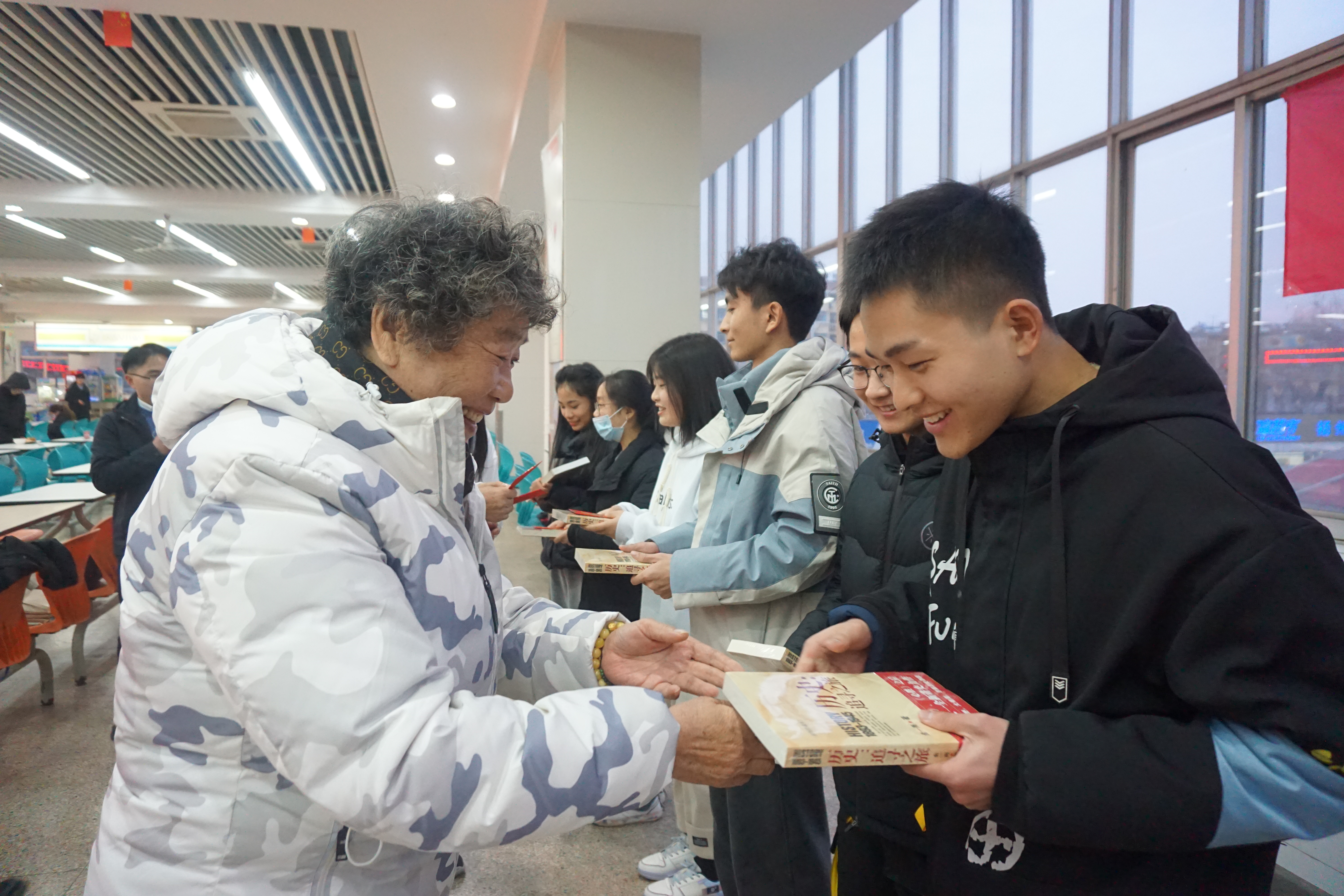 包完饺子后,关工委老教师为同学们一一送上了新年压岁红包,寓意同学们新年红红火火,并祝福同学们考试顺利。百年党史恰是风华正茂,为了引导同学们学党史、感党恩、跟党走,关工委老教师特地为新生们送上书籍《历史:追寻之旅》,以激励同学们艰苦自立,努力学习,为建设社会主义现代化强国贡献力量。