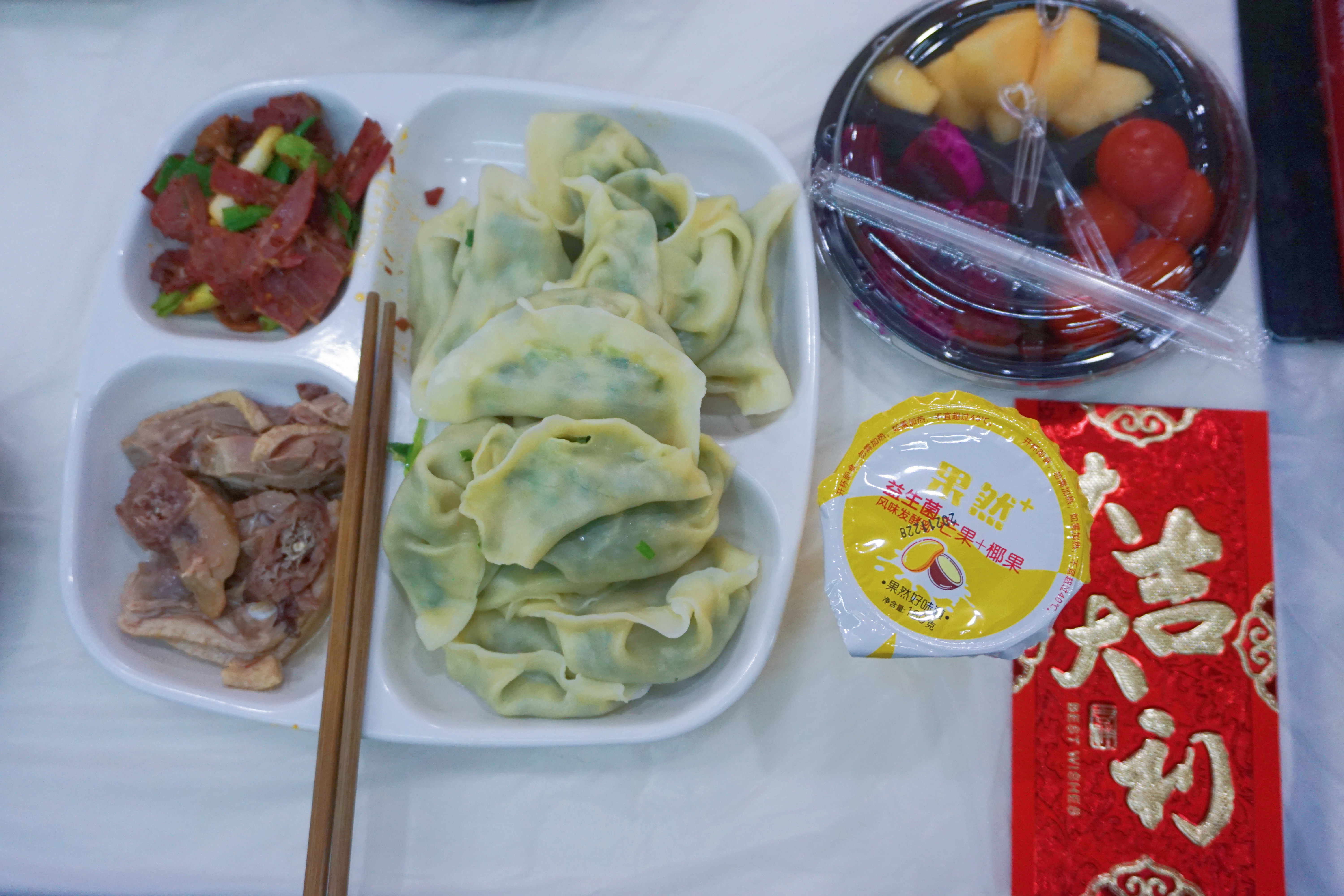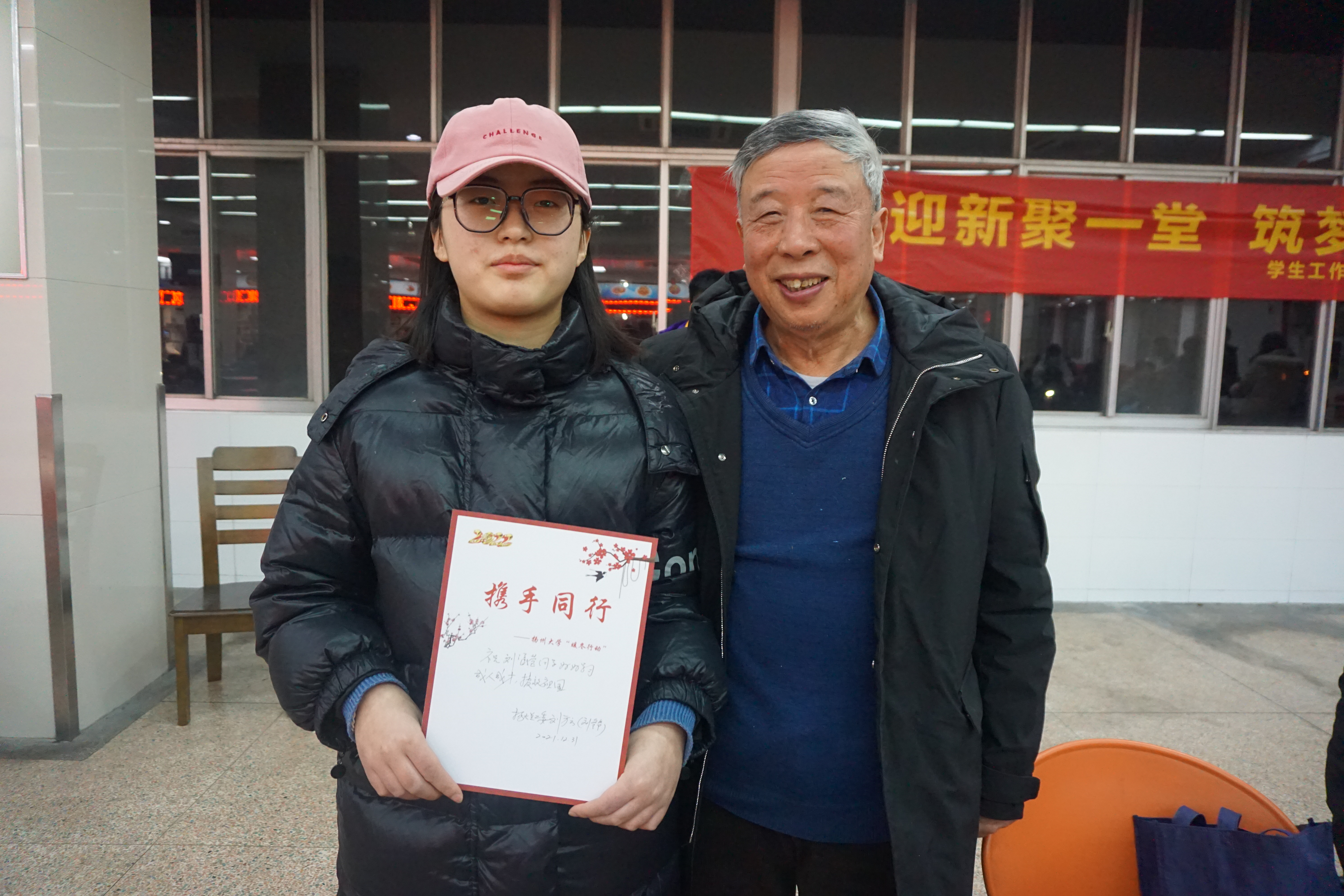 扬州盐水鹅、凉拌牛肉、水果拼盘、酸奶、包饺子、祝福贺卡、新年红包、暖心礼包,多位关工委老教师现场交流指导......这是扬州大学为大一新生举办的跨年活动。