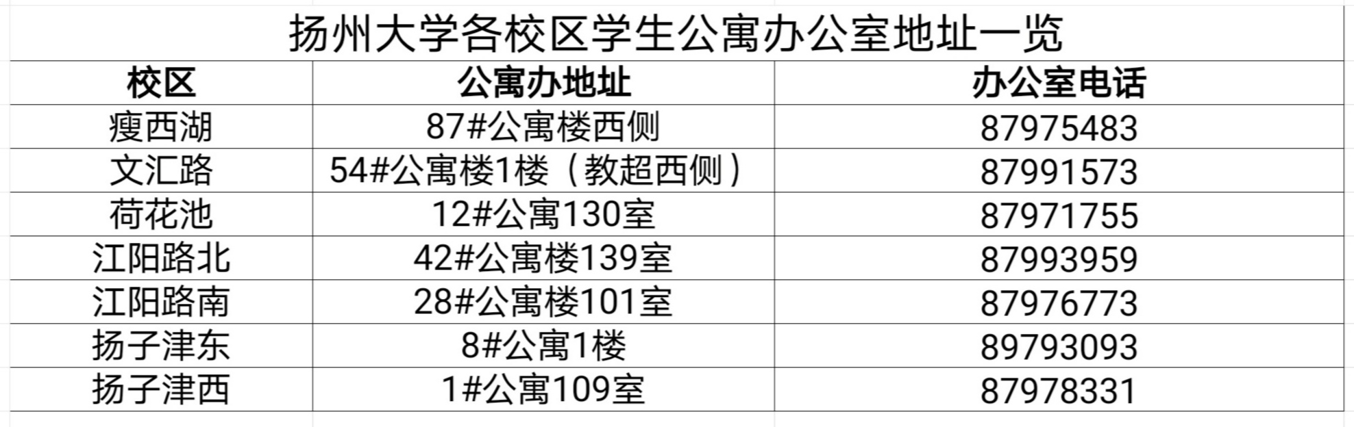 扬州大学各校区学生公寓办公室地址
