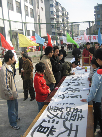 2007年11月25日,医学院和淮海路校区宿管办联合举办“百米长卷”现场书画活动,后勤集团党委副书记朱太康、学生处副处长夏泽青、医学院党委副书记徐家庆、学院团委负责人、“学生宿舍文化建设月”工作小组部分成员出席观看了现场书画活动。 通过开展“百米长卷” 现场书画活动,进一步弘扬了宿舍文化,为广大书法爱好者搭建学习和交流的平台,丰富大学生的校园文化生活。