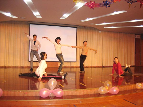 才艺大赛在动感十足的恰恰群舞中拉开帷幕,各参赛小组选派代表分别走秀亮相。在第二项才艺比拼环节中,众选手动足脑筋,花样百出,有小品话剧、舞蹈走秀、手语演绎与篮球秀等表演,可谓百花齐放,博得了现场观众阵阵欢呼与掌声。而在之后的默契环节中,来自各宿舍的两名代表背靠背进行默契的考验,场上既充满紧张又溢满欢乐。