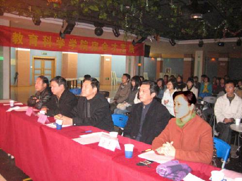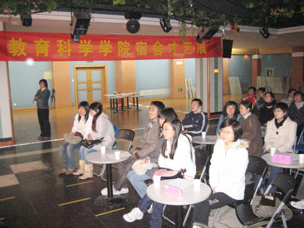 11月27日晚,教育科学学院在大学生活动中心举行了第三届宿舍才艺大赛。校学生处夏泽清副处长、教育科学学院党委副书记赵晓兰、学生公寓中心李永刚、宗晓武主任、学生处徐玉老师以及“学生宿舍文化建设月”工作小组部分成员、全校27个学院学生会的生活部部长出席并观看了宿舍才艺大赛。