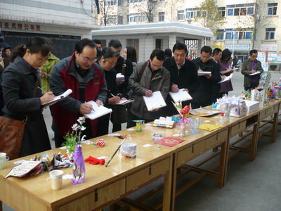 11月19日下午,扬州大学荷花池校区的学生宿舍楼下展开了一场别开生面的以“低碳生活,绿色宿舍”为主题的手工艺品制作大赛。