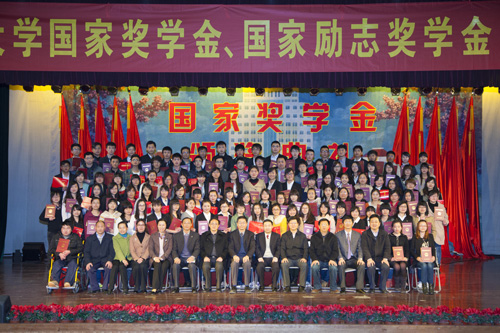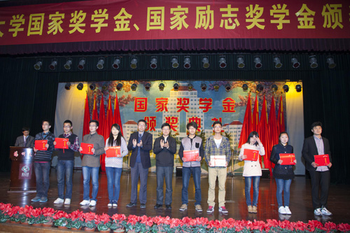4月10日晚,学校在荷花池校区大学生活动中心小剧场隆重举行国家奖学金颁奖典礼。校长焦新安为93名国家奖学金获得者一一颁奖,校党委副书记、副校长芮鸿岩,副校长胡效亚为国家励志奖学金获奖代表颁发获奖证书。