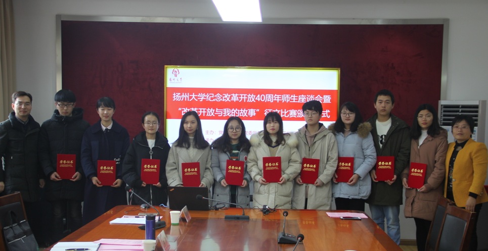 12月18日上午,由宣传部、团委、研工部、学工部(处)主办的庆祝改革开放40周年师生座谈会暨“改革开放与我的故事”征文比赛颁奖仪式在马克思主义学院会议室举行。