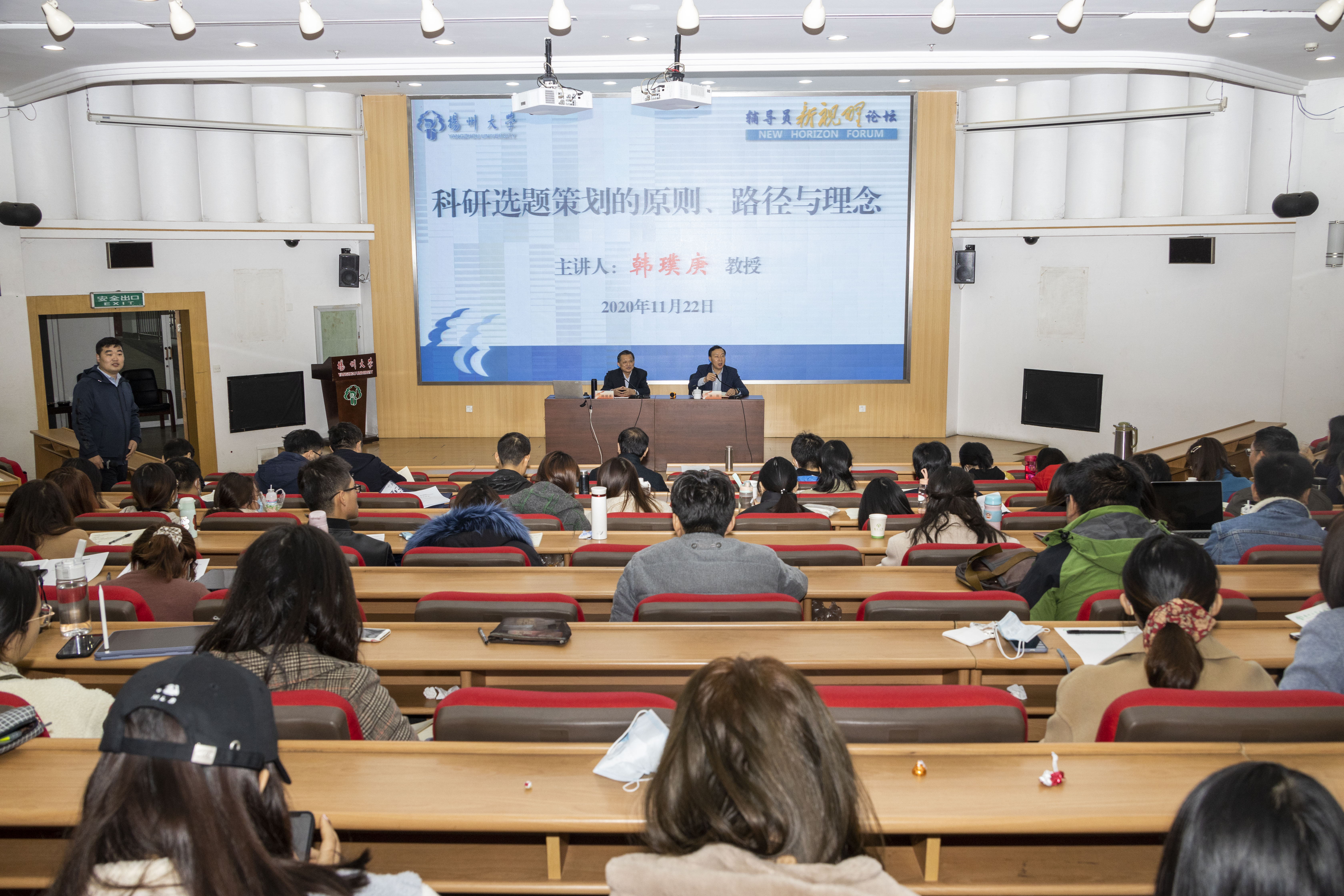 11月22日下午,学校在荷花池校区逸夫图书馆报告厅举办辅导员“新视野”论坛。《江海学刊》总编辑韩璞庚、中国人民大学书报资料中心《中国共产党》杂志编辑室主任王丽应邀作主题报告。