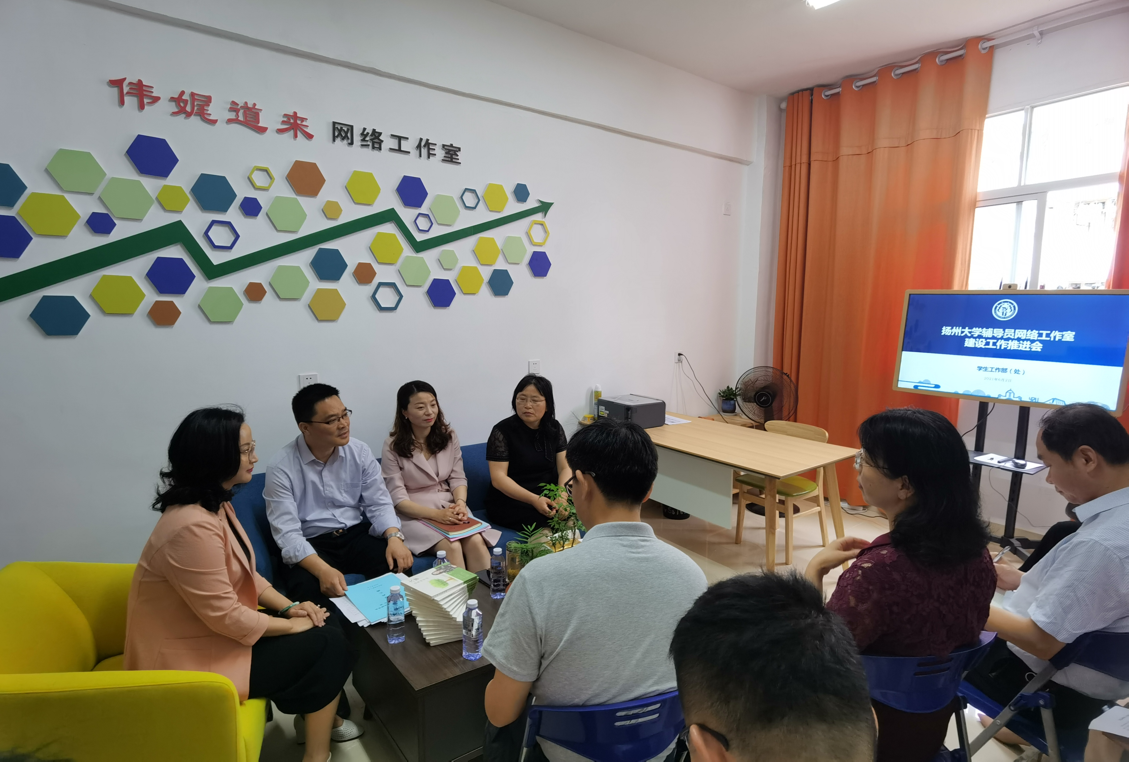 6月2日上午,辅导员网络工作室建设工作推进会在文汇路校区52号楼210室“伟娓道来”工作室举行。11位辅导员网络工作室主持人围绕网络思想政治教育、学生党团组织与班级建设、学业支持、心理健康教育、就业创业教育与生涯规划、资助育人等工作,介绍分享一年来各工作室在主题资讯、在线咨询、网络直播等形式的线上网络思政工作的经验做法及各工作室建设情况。首批11个辅导员网络工作室成立以来,共计通过微信公众号发布推文580余篇,累计字数104万余字,总阅读量13万余次,多项特色工作、优秀推文被省内外媒体关注报道,“红梅引航”工作室获2020年度江苏省高校网络教育优秀工作案例一等奖,“伟娓道来”工作室主持人吴伟获优秀微课一等奖。