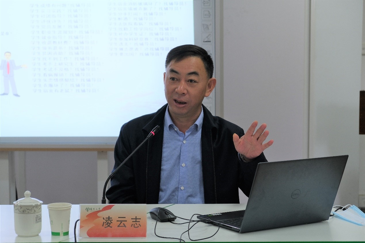 凌云志提出作为从“家门” 进“校门”再到“校门”的年轻辅导员干部,理论修养和工作经验还远远不能满足工作需要,这就要求年轻辅导员干部一定要注重学习,勤于思考,善于积淀,着力提高思考力和学习力、应变力和执行力、领导力和决策力、凝聚力和内驱力等“八力”,并结合自身辅导员工作经历,向各位辅导员分享了自己学生工作的经验与技巧。