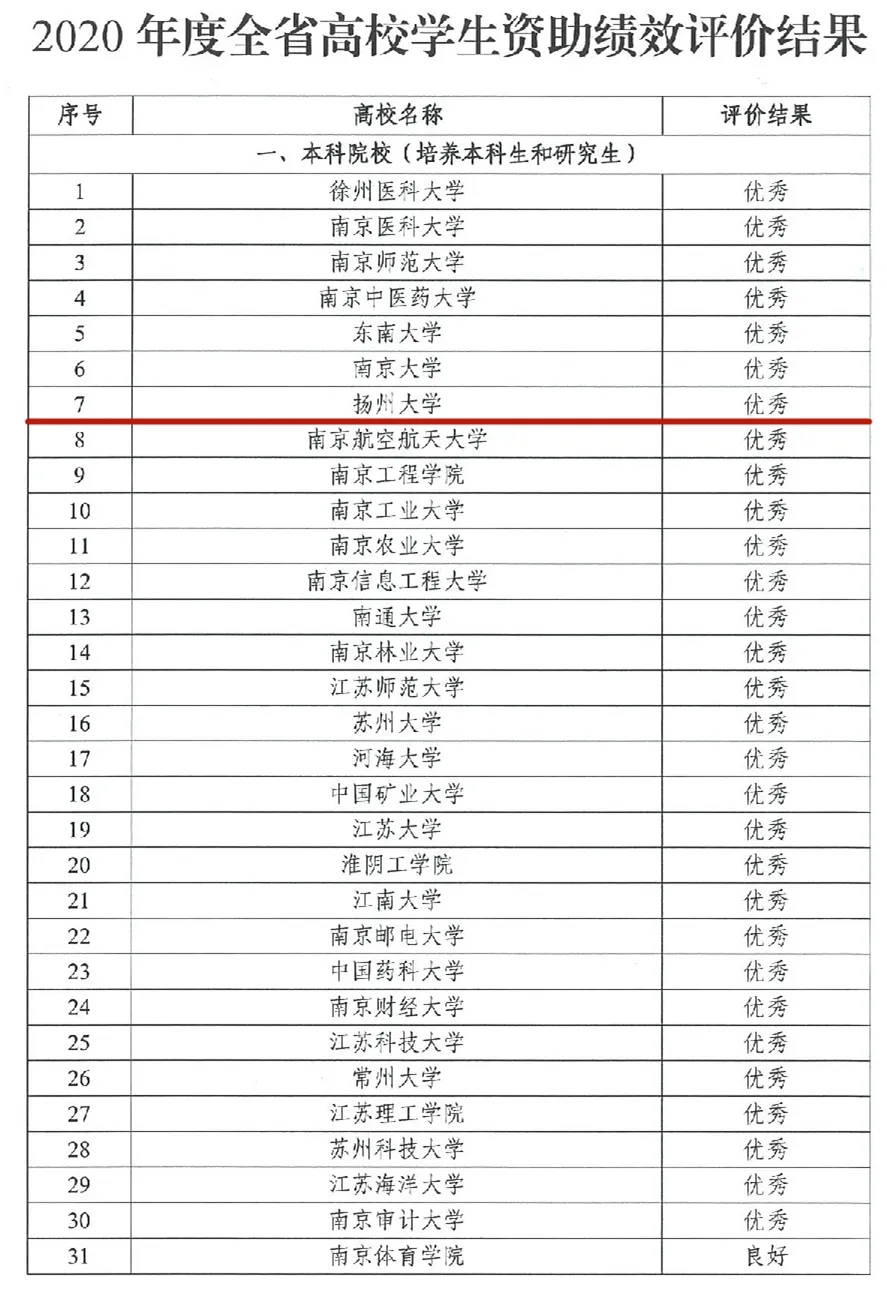 近日,省教育厅、省财政厅发布《关于公布2020年度全省学生资助绩效评价结果的通知》(苏教助函〔2021〕19号),我校再次获得评价优秀结果。这也是我校连续第11年获全省学生资助绩效评价优秀。