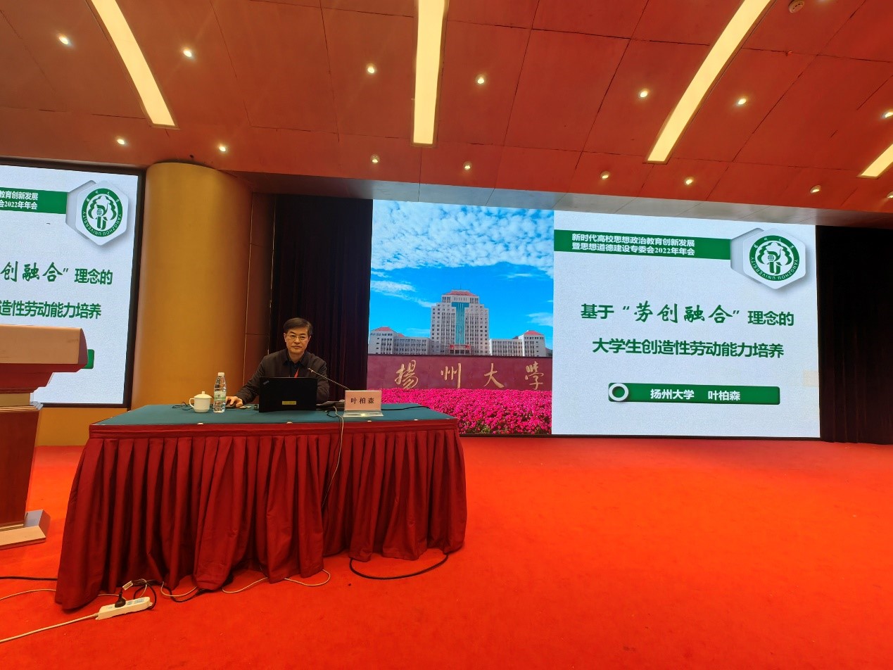 叶柏森以《基于“劳创融合”理念的大学生创造性劳动能力培养》为题,介绍了相关做法和典型成效。