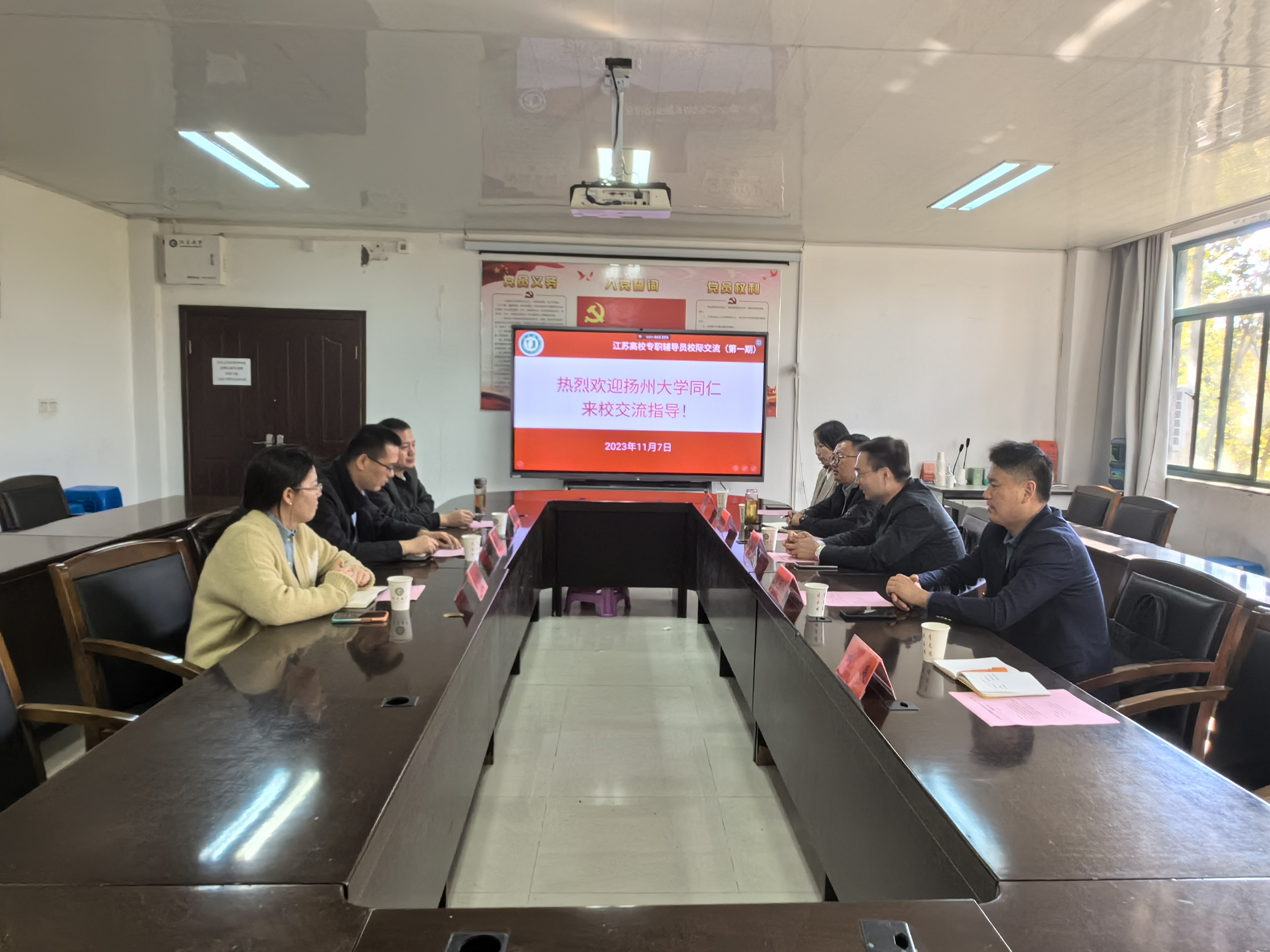 11月7日,学工部(处)部(处)长、党支部书记施林峰带队赴江苏大学进行专题调研。江苏大学团委书记、党委学生工作部副部长张永强及学工部相关科室负责人参加了座谈会。环境科学与工程学院党委副书记李玉军,团委书记(学工办主任)陈燕陪同。