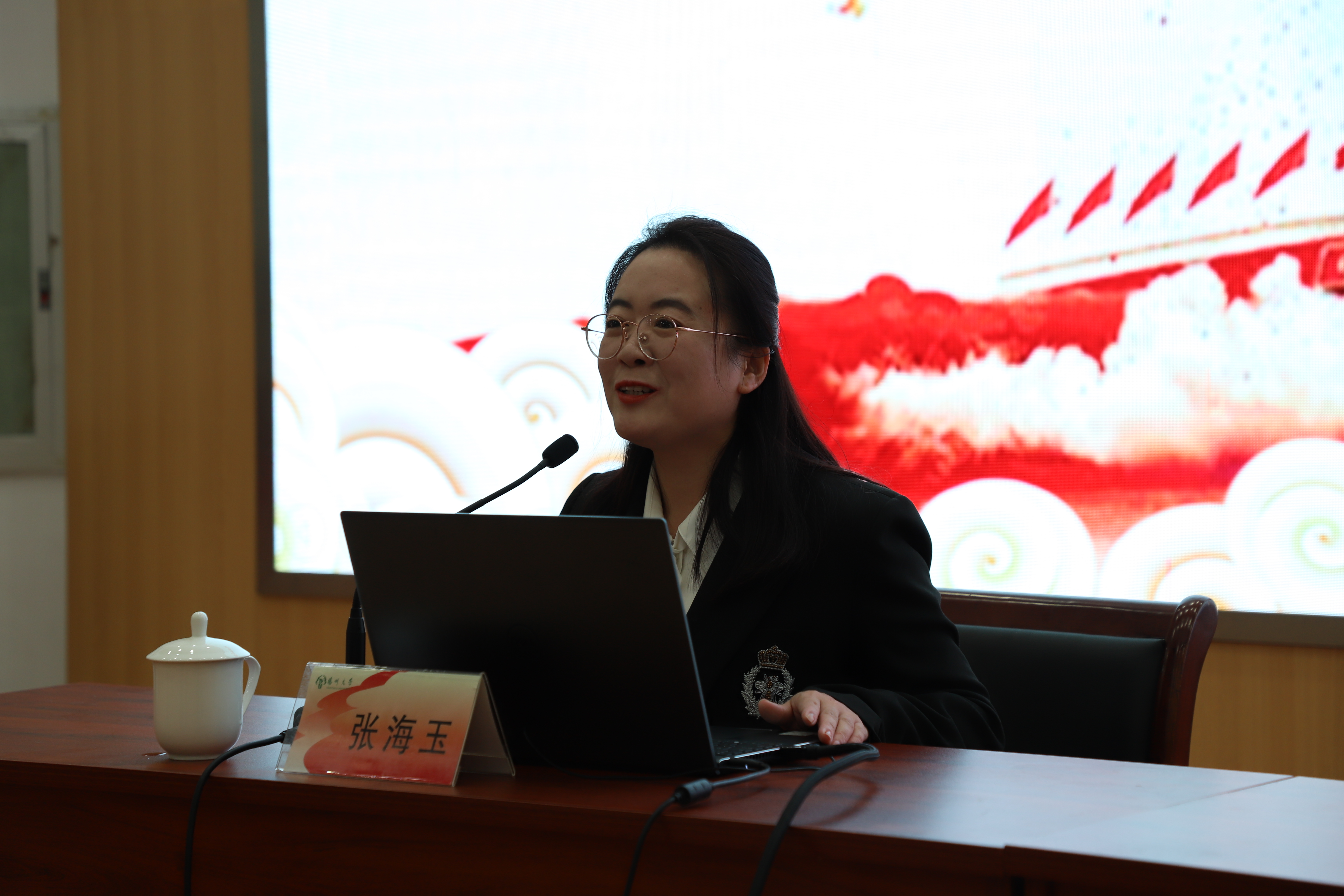 张海玉以《思政育人的六项修炼》为题,从自身辅导员成长经历出发,解读辅导员从入门、入行、入道的全过程,阐述思政育人的六项修炼的核心要素——岗位认知、责任担当、制度建设、工作态度、做法指导和工作情怀,阐释做“有情有义有温度、敢想敢为敢担当”的辅导员责任担当。