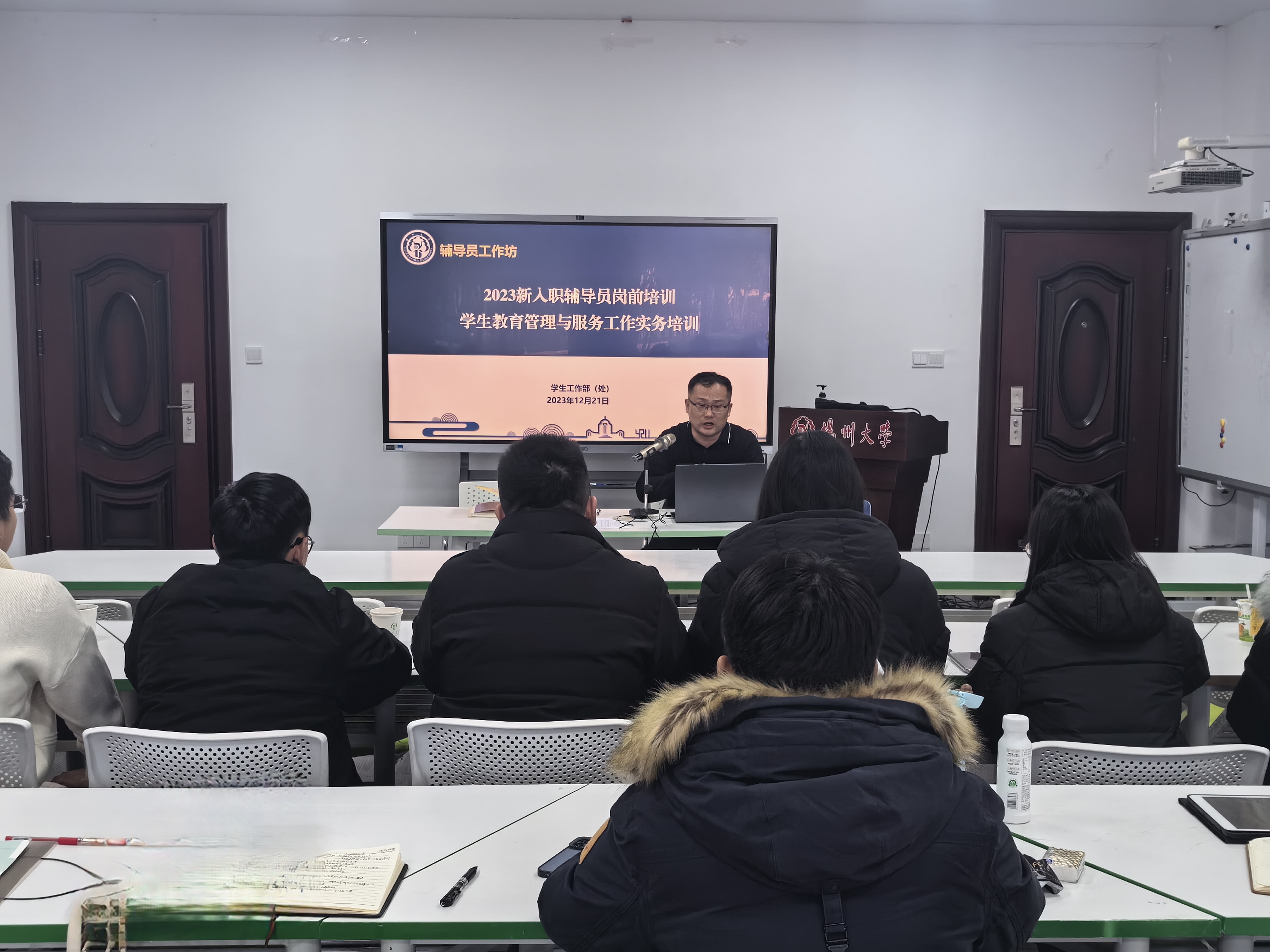 12月21日-22日,学校在荷花池校区大学生活动中心N101会议室举行新入职辅导员“学生教育管理与服务工作实务培训暨辅导员工作坊”活动。研究生工作部、学生工作部(处)、团委、就业指导中心相关科室负责人为新入职辅导员作专题培训。