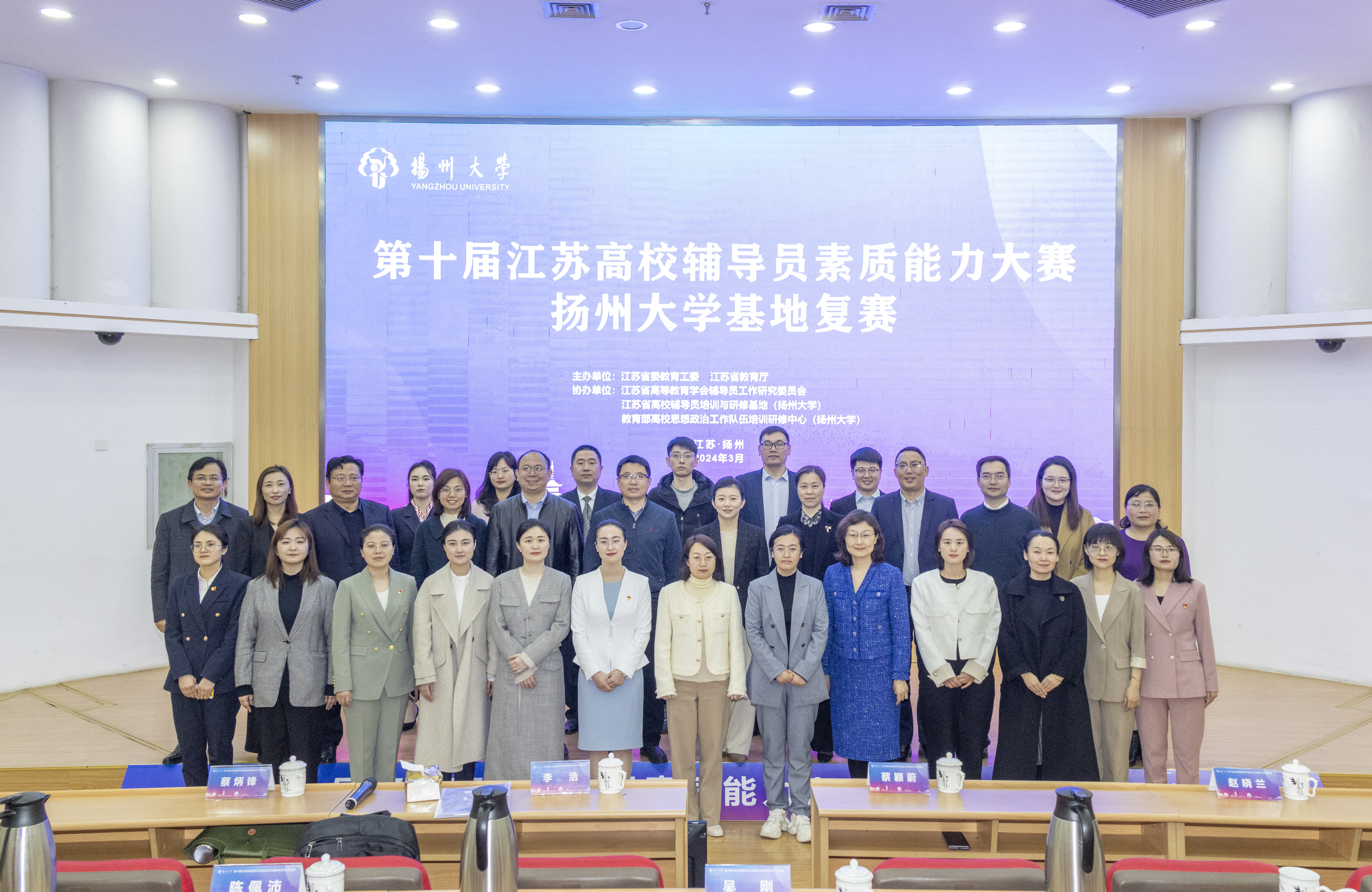 3月25日至26日,第十届江苏高校辅导员素质能力大赛扬州大学基地复赛在我校举行。校党委常委、副校长蔡颖蔚出席颁奖典礼并为获奖选手颁奖。来自基地所辖高校的20名辅导员参加大赛。