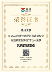 我校作为江苏省首批易班建设试点高校,自2017年12月启动易班建设工作以来,成立了扬州大学易班建设领导小组,同时成立易班发展中心,挂靠学生工作部(处)。近年来,学校始终坚持以立德树人为根本任务,高度重视网络思想政治教育工作,充分利用易班、中国大学生在线等网络思政教育平台,开展了一系列形式多样、内容丰富的活动,有效提升了学生的参与度和获得感,进一步增强了思政教育的针对性和实效性。学校先后荣获全国优秀易班共建案例、全国优秀易班指导教师、江苏省优秀易班共建高校、江苏省优秀易班共建案例、江苏省优秀易班指导教师、江苏省优秀易班辅导员、江苏省优秀易班工作站站长等荣誉。